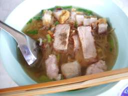 骨ごと豚肉が入ったおかゆ。豚肉は細かくほぐされている。パクチーとニンニク油の香りがかぶさる。唐辛...続きを読むRead More