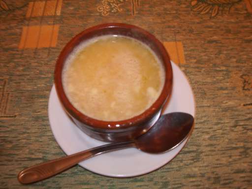 ビーフストロガノフを注文したところ、まずスープが運ばれてきた。